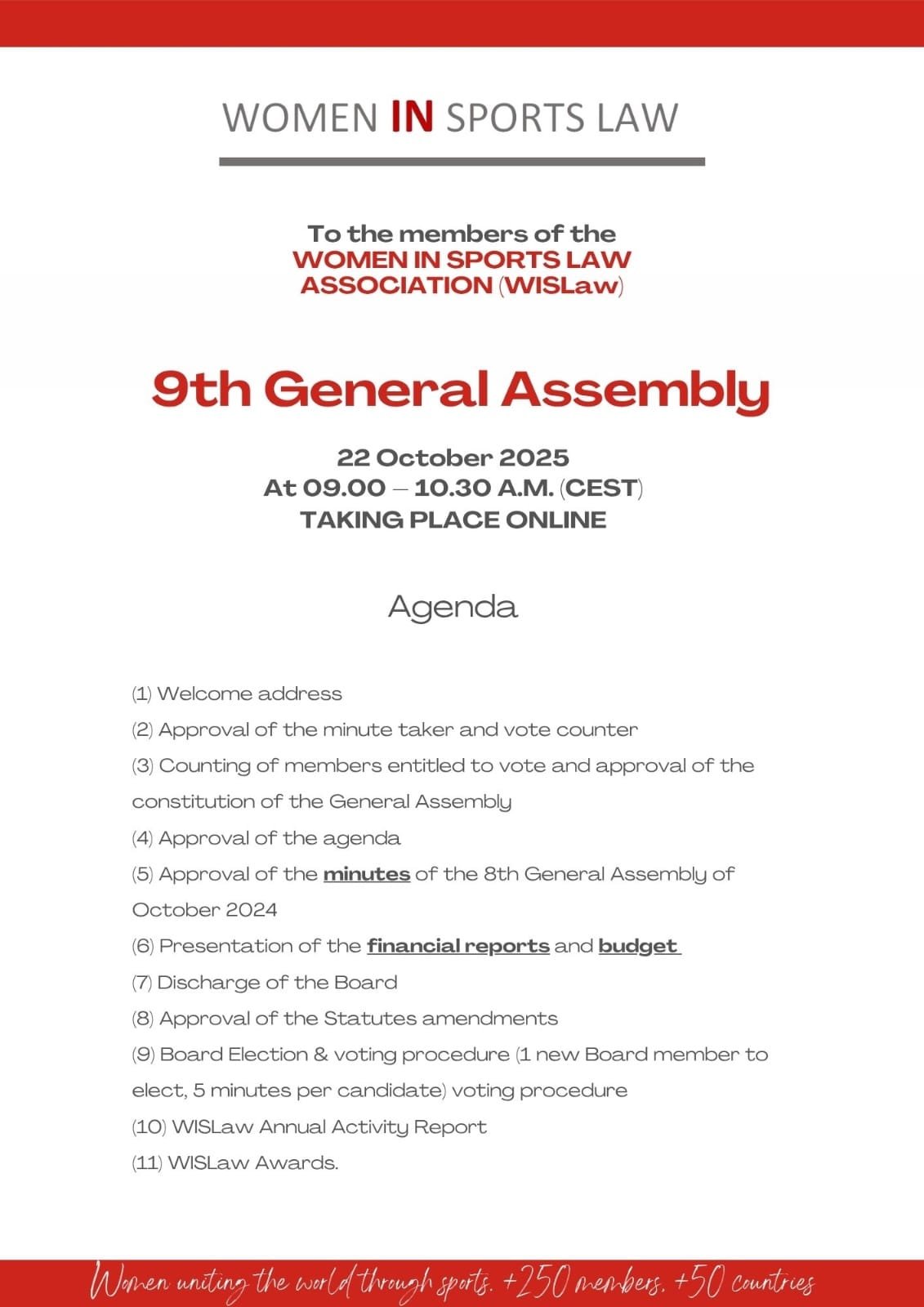 Online General Assembly & Annual Conference, WISLaw – October 22nd, 2025
